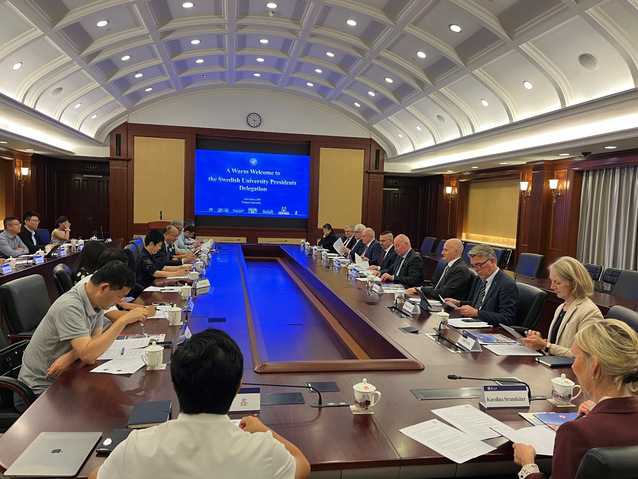 2025年10月10日下午,瑞典隆德大学、皇家理工学院、乌普萨拉大学和查尔姆斯理工大学四所高校校长代表团访问复旦大学。复旦大学副校长陈志敏、复旦大学上海医学院副院长吴凡会见校长团,双方围绕深化中瑞高等教育合作、推动可持续发展与跨学科研究、加强科技创新与人才培养等议题展开对话。