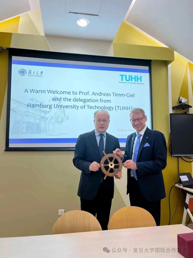 2025年10月20日上午,德国汉堡工业大学校长安德烈亚斯·蒂姆-吉尔教授Prof. Andreas Timm-Giel)率代表团访问复旦大学。陈志敏副校长在邯郸校区马锦明楼会见来宾
